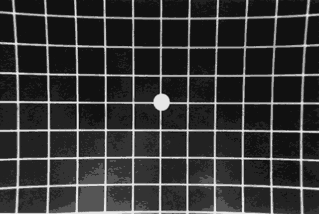 Figure 14 shows a photograph of an Amsler grid. The image is stigmatic and flat, but distorted. The image does not preserve the spatial relationship of the object points. For that matter, enlarged, reduced, or inverted images do not preserve the spatial relationship of the object points either. However, an enlarged image differs from the original object by only a scale factor. Distortion is a greater disruption of the image. No simple change in scale can make a distorted image resemble the object.