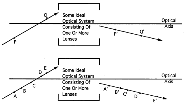 | Before proceeding, some additional definitions will be helpful. An ideal lens is a rotationally symmetric optical system that produces an ideal image