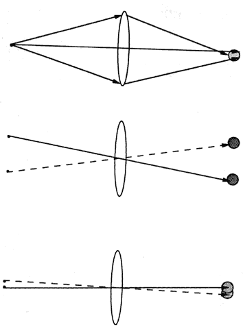 distance from an object point increases, divergence decreases (see Fig. 19). Similarly, as distance from the image point increases, convergence decreases. Thus, vergence