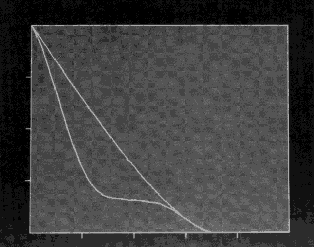 Images can be analyzed in the same way. The trick is to find an optical equivalent of a pure tone. The optical analog of a pure tone is a sine wave grating (SWG). Figure 62 gives several examples. The frequency of the grating is determined by the horizontal peak-to-peak distance. The grating contrast is indicated by the difference in brightness between the brightest and darkest points and is analogous to the volume of a tone. One difference between sound and optics is that SWGs have an orientation--vertical, horizontal, or any oblique axis. Just as sound is a mixture of pure frequencies, images are a mixture of SWGs. The image of a single SWG has the same frequency and orientation as the original SWG, but the contrast is always decreased. The ratio of the image SWG's contrast to the object SWG's contrast is the transfer factor. The transfer factor is always between zero and 1, and different frequencies have different transfer factors. The graph of transfer factor versus frequency is the MTF and is exactly analogous to the frequency response of an audio system. The MTF of an ideal optical system (no loss of detail) would be a horizontal line (Fig. 63). This is impossible to achieve because of diffraction. Figure 64 shows the diffraction-limited MTF for three different apertures. At some point, the MTF becomes zero; this is the cutoff frequency. An SWG with a frequency exceeding the cutoff images as uniform gray. No variation in contrast is seen. In other words, SWGs with frequencies above the cutoff do not appear in the image. SWGs with frequencies below the cutoff appear in the image but at reduced contrast compared with the original. The cutoff frequency roughly corresponds to the resolution.