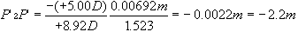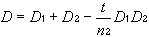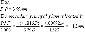Where D1 = power of the first surface, D2 = power of the second surface, and n2 = refractive index of the glass. The distance between the primary principal plane of the front surface and the primary principal plane of the combined system (designated as P1P) is given by: