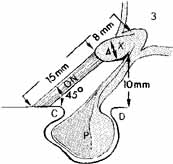 Fig. 6 Relationships of the optic nerves (ON) and chiasm (X) to the sellar structures and third ventricle (3). C, anterior clinoid; D, dorsum sellae; P, pituitary gland in sella.