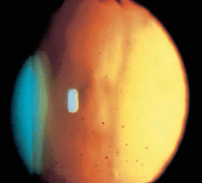 Fig. 7. Retroillumination of an eye with Fuchs' heterochromic iridocyclitis reveals diffuse distribution of keratic precipitates.