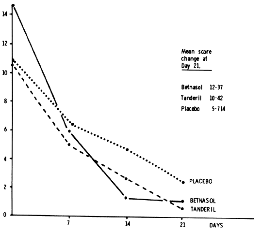 Local Corticosteroids Local steroid therapy increases the patient's comfort, but it is not effective in suppressing scleral inflammation. It is occasionally justified to use local steroid therapy alone when the inflammation is mild, the pain is slight, and corneal involvement is present, or very occasionally between attacks in the more severe forms of the disease to prevent remission. However, local steroids should be used only sparingly, if at all, in scleral disease because of the high chance of developing steroid-induced glaucoma or cataract. Systemic Therapy NONSTEROIDAL ANTI-INFLAMMATORY AGENTS. Nonsteroidal anti-inflammatory agents are effective in suppressing the inflammatory response in the majority of patients with diffuse and nodular scleritis, especially if they exhibit a high flow pattern on fluorescein angiography. Dosage levels need to be high initially and, as a consequence, care must be taken to monitor the patients to ensure that no toxic side effects occur. Treatment must be continued until the inflammation subsides, after which it can be stopped abruptly. In assessing the effect of treatment, pain, tenderness, episcleral and scleral injection, and corneal and intraocular involvement should be used as parameters of activity of the disease. In a series of double-blind controlled trials, the effects of different anti-inflammatory and immunosuppressive agents have been compared. The suggested routines of treatment are based on the results of these trials. Unfortunately, not all of the nonsteroidal anti-inflammatory agents are effective in controlling scleral inflammation. The current practice is to use flurbiprofen (Froben), 100 mg three times daily, for at least 1 week in all patients who present with scleritis of whatever type, provided there is no evidence of vascular closure or scleral destruction on slit lamp examination. The response, if it is going to occur, is immediate, with the pain disappearing within 48 hours. Within a week, the results of investigations are known, including those of the angiographic films if they have been done. If there is a poor response to flurbiprofen and the angiogram shows a high flow pattern, the drug is changed to another nonsteroidal anti-inflammatory agent, because there is an individual susceptibility among the patients. Only if there is no response in the progression of the disease or if there is evidence of vascular closure are systemic steroids or other immunosuppressive drugs used. SYSTEMIC STEROID THERAPY. If the scleritis is severe or necrotizing or if areas of vascular closure are detected with slit lamp examination or fluorescein angiography, then the use of systemic steroids is mandatory (see Figs. 40 through 44). Prednisone and prednisolone are most commonly used. The principle of treatment with systemic steroids is that a sufficient amount must be given to suppress the condition; once this has occurred, the dosage may be rapidly reduced to a maintenance level, which may have to be continued until a natural remission occurs, or the steroid may be replaced by a nonsteroidal anti-inflammatory agent. Provided sufficient amounts are given and the patient can tolerate them, systemic steroids will control scleritis. The problem is deciding what dosage is appropriate. The following scheme has been found to be effective. If the angiogram shows early vascular shutdown and treatment with flurbiprofen has not been effective, oral prednisolone, 60 or 80 mg, is given for 2 days and is reduced over 1 week to 20 mg. The dose of prednisolone is then reduced by 2.5 mg every other day until the pain recurs or signs of inflammation begin to recur. This maintenance dose is continued for about 1 month, and then the dose is reduced by 1-mg steps. This final phase may be aided by the addition of a nonsteroidal anti-inflammatory drug. Pain relief is by far the most sensitive indicator of control of the disease. If this course of treatment is not effective, intravenous pulse therapy of high doses of methylprednisolone, with or without the use of immunosuppressive therapy, should be considered (Fig. 60). Pulsed Therapy With Methylprednisolone. In very severe necrotizing scleritis or posterior scleritis when the vision is being threatened, it is important to suppress the inflammatory reaction completely. This is achieved by the use of intravenous methylprednisolone. The patient must be carefully monitored because this therapy inhibits all cellular transfer mechanisms, including the heart, and is therefore potentially dangerous. Methylprednisolone is administered by intravenous infusion as 500 mg or 1 g given over a period of 1 hour. The clinical response is observed. If this is unsatisfactory, then the dose may be repeated at 1- to 3-day intervals for three doses. It may be necessary to add other immunosuppressives to this regimen. Immunosuppressive Therapy The commonly used immunosuppression drugs used in the control of scleral disease are cyclophosphamide, cyclosporine, azathioprine, methotrexate or chlorambucil. Cyclophosphamide is the drug of choice in patients with systemic vasculitis, periarteritis nodosa, and Wegener's granulomatosis if they are not of child-bearing age. In severe cases of these disorders, cyclophosphamide is given with methylprednisolone as a bolus of 500 mg. A high fluid intake is essential to prevent hemorrhagic cystitis. Cyclophosphamide is then given orally at a dose of 50 mg three times per day. This treatment has a profound effect on the lymphocyte count, which must be monitored at weekly intervals for the first few months of treatment. Azathioprine can also be used as an adjunct to steroid therapy in those patients who require an unacceptably high maintenance dose of steroid (i.e., 15 mg prednisolone or more) to control their disease and in those with known immune complex disease (Fig. 61). Cyclosporine is helpful sometimes. Considering that pathologically there is always evidence of T-cell activation, it might be exp