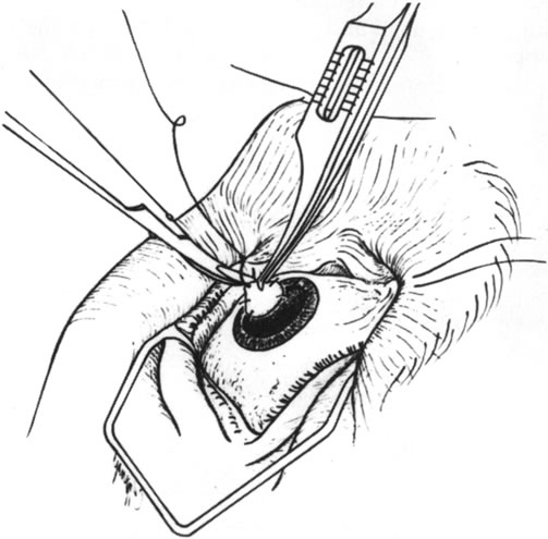Conjunctival flaps play a less important role in the treatment of perforations than they do in the prevention of progression of corneal melting. Nonetheless, in some leaking descemetoceles and small perforations, conjunctival flaps may serve as a temporizing measure before keratoplasty.14 With the use of tissue adhesives and patch grafting, however, the use of conjunctival flaps for perforation has become almost obsolete.