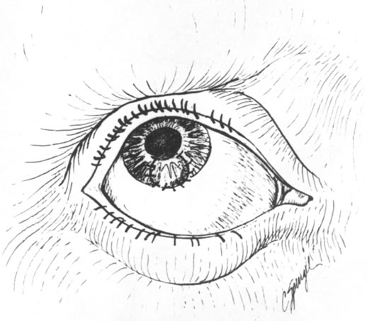 Fig. 14. Postoperative appearance of lamellar corneal patch graft.