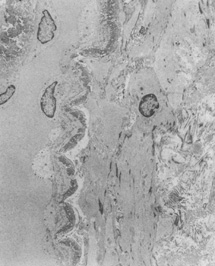 perforating injury. Immunohistochemical studies on human adult sclera show that the adult extravascular sclera contains the collagens type I, III, V, VI, and VIII (Fig. 15), the glycosaminoglycans dermatan sufate and chondroitin sulfate with small amounts of hyaluronic acid and heparan sulfate, and the glycoproteins fibronectin and vitronectin.9 Scleral blood vessels have the collagens type IV, V, and VI, the glycosaminoglycans heparan sulfate and chondroitin sulfate (Fig. 16), and the glycoproteins fibronectin and laminin.