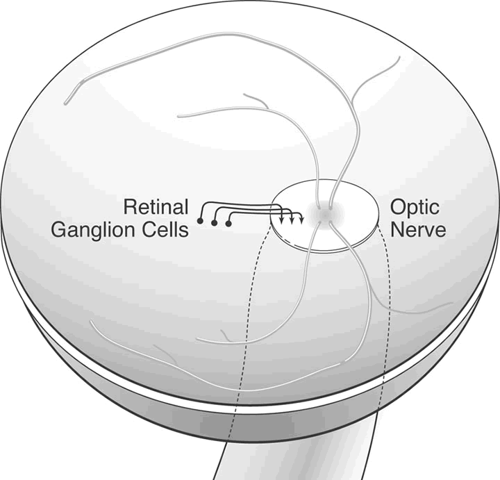 | There are approximately 1,000,000 retinal ganglion cells in each retina, with