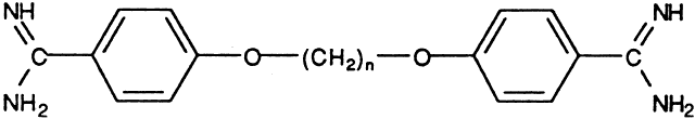 Fig. 2. Structural basis of the antiprotozoal diamidines, propamidine (n = 3), pentamidine (n = 5), and hexamidine (n = 6).