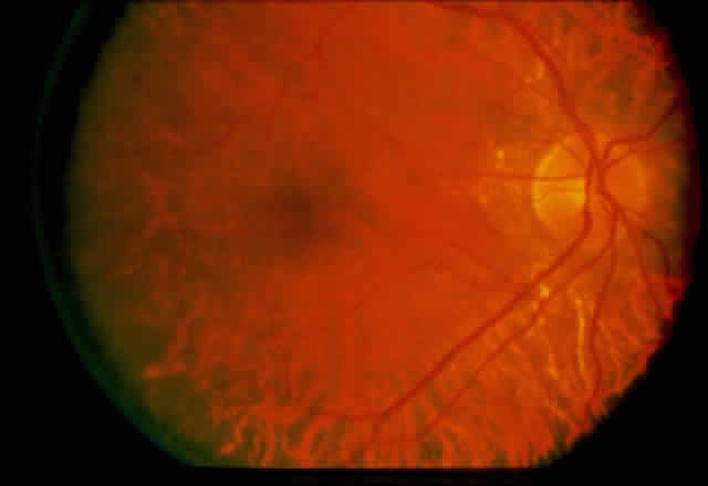 In recent years, significant progress has been made with regard to the molecular biology of this disease. A gene predisposing persons to von Hippel-Lindau disease was mapped to chromosome 3p25-p26 and was subsequently cloned.411 The von Hippel-Lindau disease gene appears to be another tumor-suppressor gene, and loss of the function of the protein leads to tumorigenesis. Alteration of the von Hippel-Lindau gene, including rearrangements and deletions, were found in 28 of 221 von Hippel-Lindau kindreds. The von Hippel-Lindau gene is evolutionarily conserved and encodes two transcripts with molecular weights of approximately 6 and 6.5 kb. The partial sequence of the inferred gene product shows no homology to other proteins, except for an acidic repeat domain found in the procyclic surface membrane glycoprotein of Trypanosoma brucei. Based on clinical findings of vascular abnormalities, it has been speculated that the von Hippel-Lindau protein may be part of the structural component for blood vessel walls.412 X-LINKED RETINOSCHISIS X-linked retinoschisis is a bilateral ocular disease occurring in males. Clinical findings include separation of the nerve fiber layer from the outer retinal layers in the retinal periphery, with the development of nerve fiber-layer breaks occurring most frequently in the inferotemporal quadrant of the fundus. Posterior pole findings include cystoid foveal changes, with retinal folds that radiate from the center of the foveal configuration (petaloid pattern). Unlike the cysts of cystoid macular edema, however, cystoid changes in the X-linked retinoschisis do not stain on fluorescein angiography.413,413a-d The chromosomal locus for the X-linked retinoschisis has been mapped to Xp22.2-p22.1.53,413e Allelic heterogeneity may account for the wide spectrum of clinical presentation of this disease. Differential diagnoses include retinopathy of prematurity, Goldmann-Fabre disease, retinitis pigmentosa, FEVR, Norrie's disease, and Stickler's syndrome. Further molecular characterization of these diseases may aid in their clinical differentiation. |
